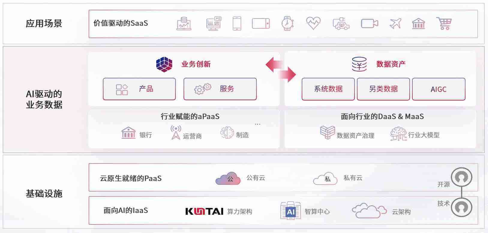 数字时代,,,围绕企业数字化转型的关键要素,,,,365钱包数码开创性的提出数云融合战略和技术体系框架,,着力在云原生、、、、数字原生、、AI原生和信创产业上架构产品和服务能力,,,,为处在不同数字化转型阶段的快消零售、、、汽车、、、金融、、、医疗、、、政企、、教育、、、运营商等行业客户提供泛在的敏捷IT能力和融合的数据驱动能力,,构建跨界融合创新的数字业务场景和新业务模式,,,,助力企业级客户建立面向未来的核心能力和竞争优势,,全面推动社会的数字化、、、、智能化转型升级。。